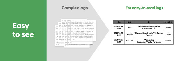 Complex and difficult log data is transformed into easy-to-understand information using our unique translation and conversion technology.